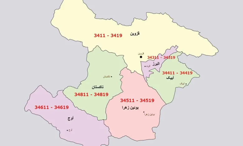 رنج کد پستی شهر‌های استان قزوین