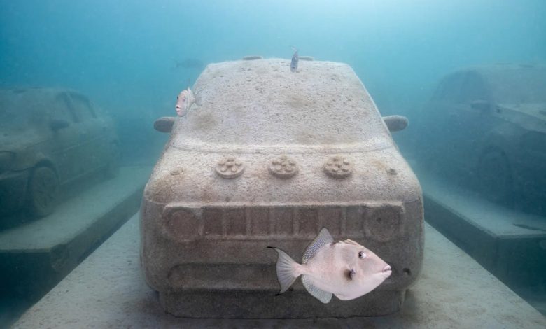 مجسمه خودروی بتنی با اندازه طبیعی زیر آب